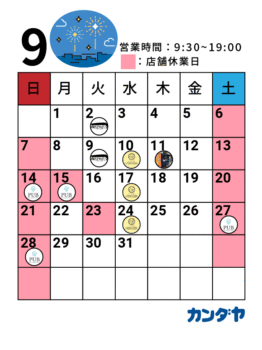 8月の営業日のお知らせ